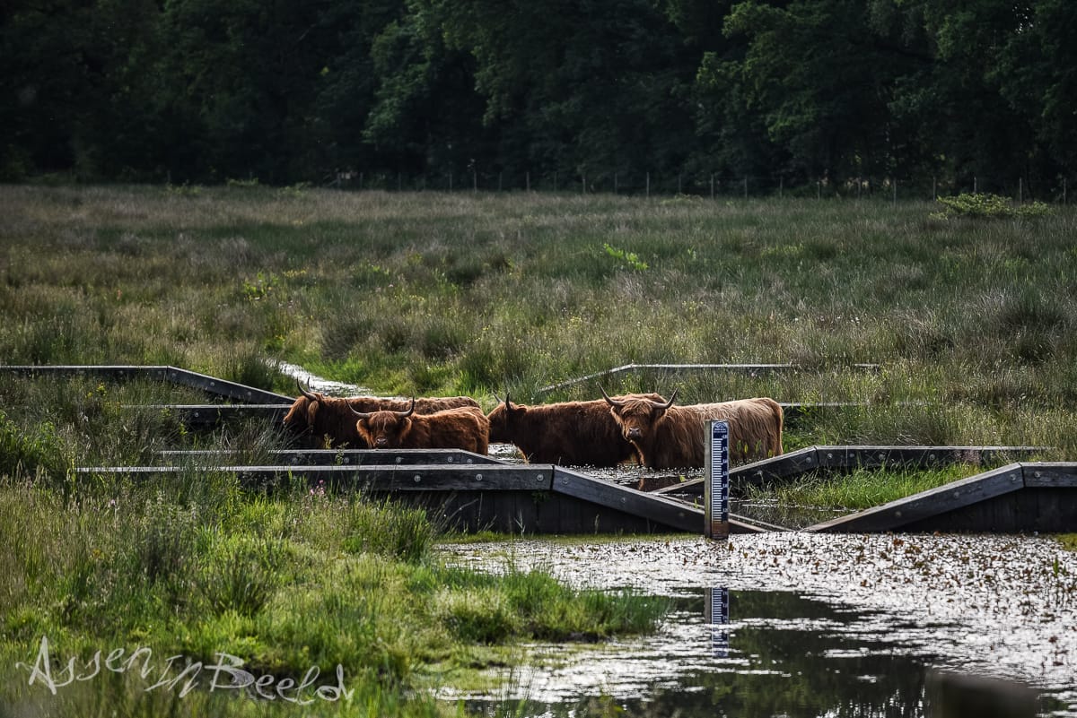 Poedelen in het Messchenveld De Schotse Highlanders in het messchenveld zoeken ook even een afkoeling