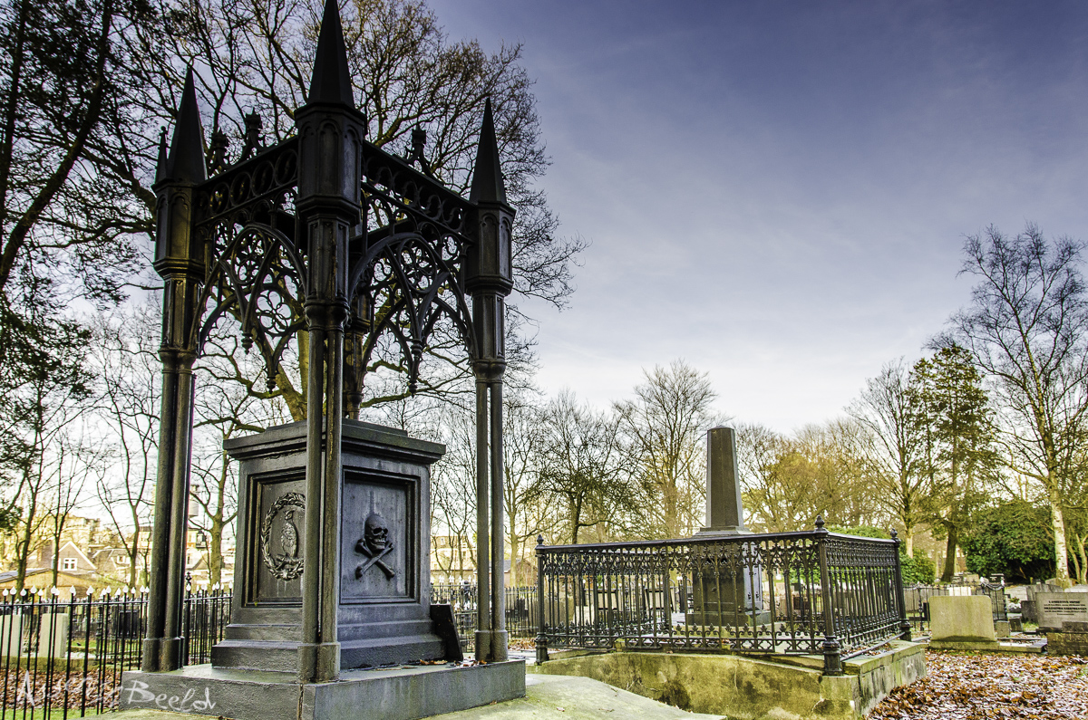 Het van smeed- en gietijzer gemaakte TOEGANGSHEK van de in 1822 aangelegde Noorderbegraafplaats is zeer waarschijnlijk vervaardigd door de Asser IJzer- en Metaalgieterij (alhoewel de naam van de fabriek niet op het hek is aangetroffen). Omdat verschillende ijzergieterijen sterk op elkaar gelijkende toegangshekken voor begraafplaatsen vervaardigden kan het toegangshek een andere herkomst hebben. Omschrijving Het symmetrische hek is voorzien van vlamvormige gietijzeren ornamenten die zijn bevestigd aan en op de regels en de ronde spijlen van smeedijzer. De gecanneleerde gietijzeren balusters met pijnappelbekroning staan op hardstenen blokken. De hogere, openslaande hekdelen in het midden hangen aan posten die bestaan uit smeedijzeren stijlen en van boven naar beneden zijn ingevuld met gietijzeren doodssymbolen in de vorm van vliegende zandloper, staartbijtende slang aan samengebonden, gekruiste zeisen en eveneens gekruiste, gekeerde fakkels. De omkranste uiltjes die oorspronkelijk bovenop de hekposten stonden zijn verdwenen. De hekken aan weerszijden zijn lager, met naar de openslaande hekken toe omhoogbuigende delen, waarvan het rechter eveneens fungeert als toegangshek. De gietijzeren ornamenten en de doodssymbolen van de hekken zijn zwart, de smeedijzeren delen groen geschilderd. Waardering De geheel van ijzer vervaardigde entree van de Noorderbegraafplaats is in diverse opzichten een waardevol object. Het hekwerk is in de eerste plaats van cultuurhistorisch belang als een karakteristiek onderdeel van de negentiende eeuwse Nederlandse begraafplaatsen. Dergelijke in ijzer uitgevoerde, nog min of meer gave hekken zijn bovendien vrij schaars geworden, waardoor ze zeldzaamheidswaarde hebben. De hekken zijn evenals de eveneens beschermde grafmonumenten van de fanmilies Van Bulderen en Brumsteede van belang als onmisbare onderdelen van de negentiende eeuwse aanleg van de Noorderbegraafplaats, waardoor ook hun ensemblewaarde groot is. De hekken zijn tevens onderdeel van het beschermde stadsgezicht. (bron: Rijksdienst voor het Cultureel Erfgoed)